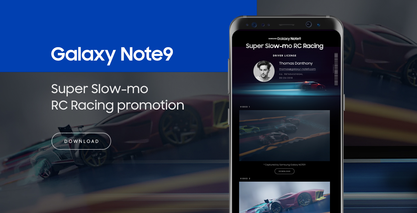 갤럭시9의 슈퍼슬로모션 기능을 RC카 레이싱에 접목시켜 생동감 넘치는 순간을 Super slow-mo로 담아 고객에게 제공하는 프로젝트입니다.