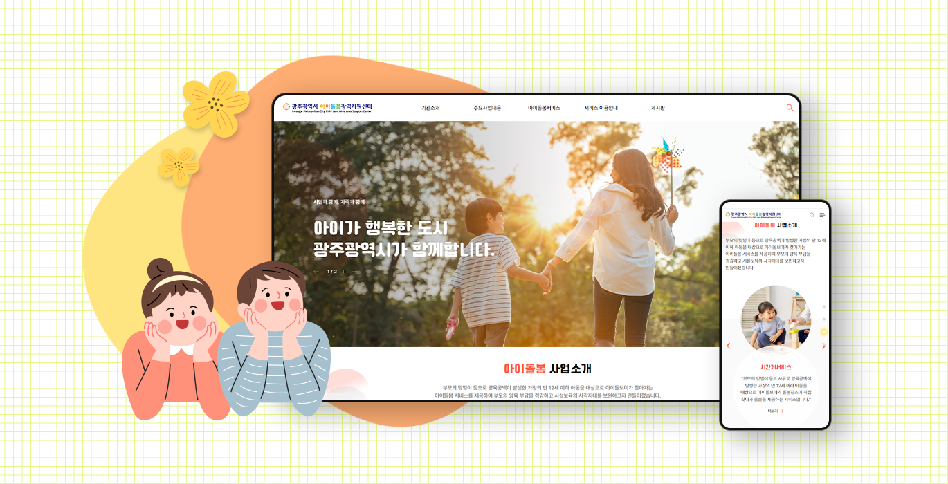 광주 아이돌봄 서비스 소개 / 커뮤니티 / CMS / 5개구 사이트 제공
